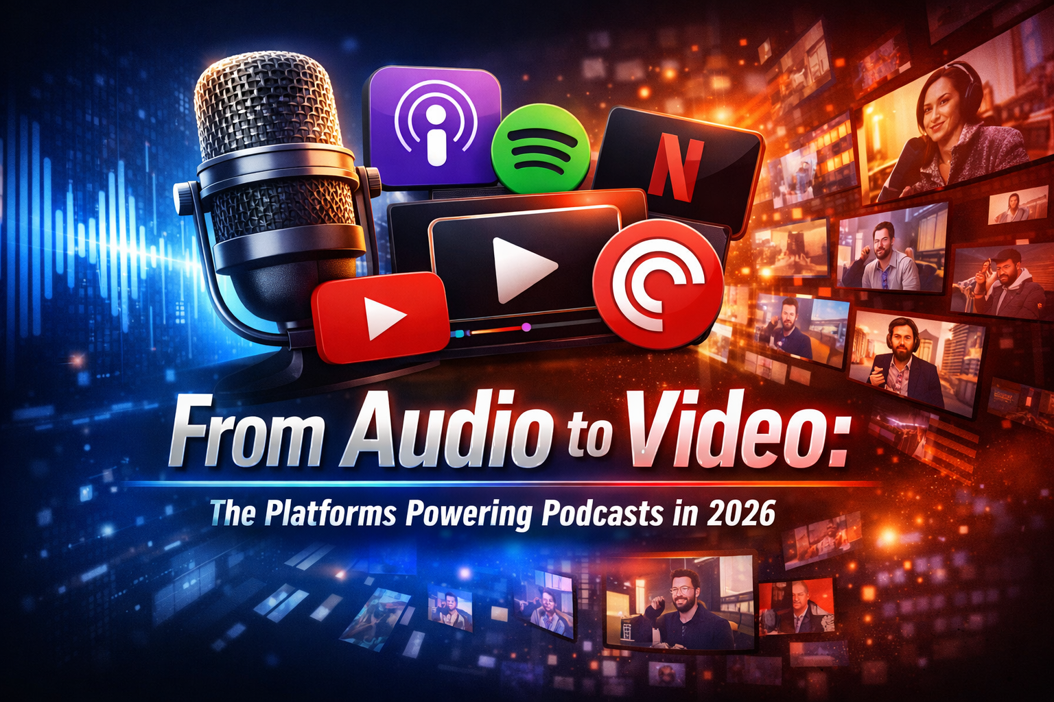 Video podcasts are finally going mainstream. In spring 2026, Apple Podcasts will add native video support across iOS, iPadOS, visionOS, and the web, letting listeners switch seamlessly between audio and video and download video episodes for offline viewing. Spotify continues to lean into video with direct uploads, in‑app viewing, and new monetization tools, while YouTube remains the dominant destination for full‑length video podcast episodes. Beyond the big three, platforms like Netflix (through curated podcast video deals), Podbean, TalkShoe, and even partially supported apps like Pocket Casts are expanding where and how creators can publish video‑first shows.